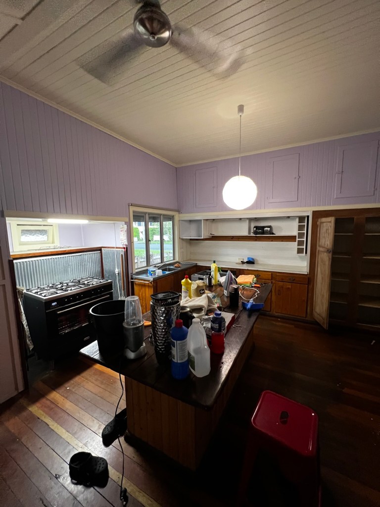 In this case, the Pinterest board was filled with wraparound verandas, timber floors and light, airy rooms. And luckily, there’s no one more determined to executing a vision as Seb— especially when that vision is house ownership. So when he finally had the deposit ready and a mortgage broker lined up, it really did feel like the stars had aligned. This little Queenslander appeared for the perfect price, in the exact location he’d been obsessively browsing morning and night. Never mind that she was a bit overgrown and dripping purple paint over the original lead—she had enough personality to make up for all of that. And just like everything else with this house, even the handover process was a little quirky. But hey, we got the keys—and the rest is character-building. Right?
