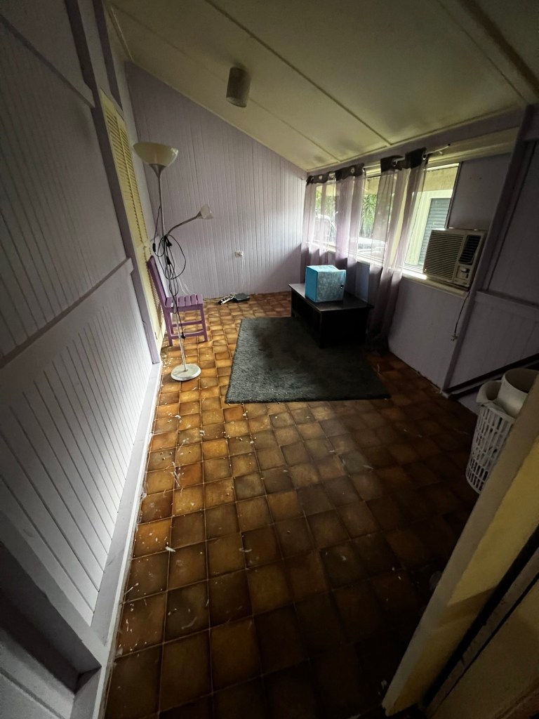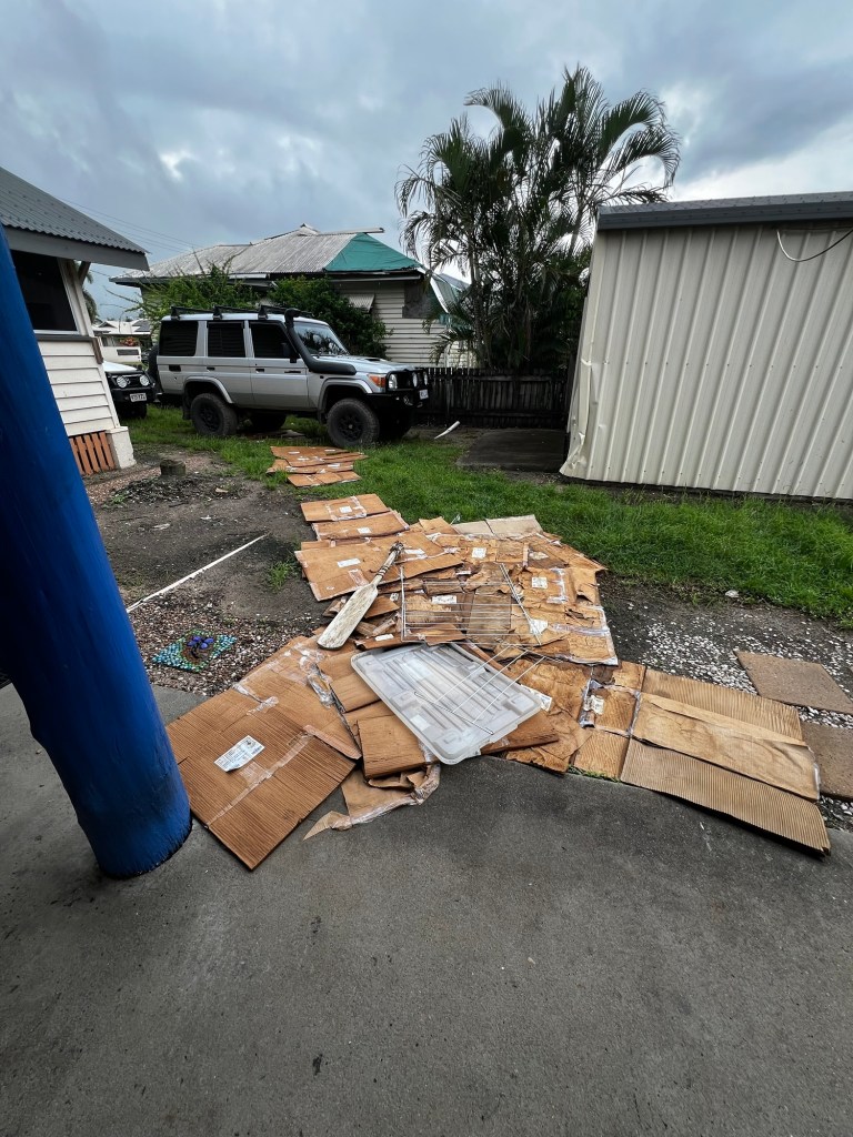 First week in will be all about clearing out the clutter. I felt like I needed a sage stick to smudge out the previous owners vibes when we finally walked through the front door— but honestly one stick wouldn’t have stood a chance. We are talking fresh holes in the walls and floor, some questionably painted pallet furniture and a rug whose previous life might’ve been as a kitty litter tray… Standing in the kitchen surrounded by neglected trinkets and forgotten cardboard piles, it felt like the house had been paused mid-chaos, and now we were here hitting play.